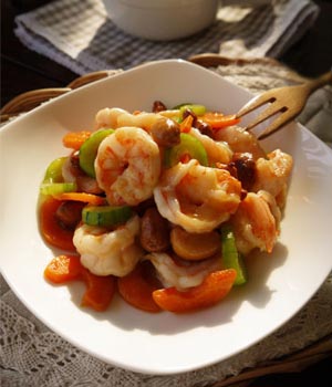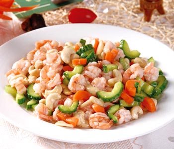 虾仁是典型的高蛋白、低脂肪食物,易于吸收,具有补肾壮阳、健胃的功效,腰果营养十分丰富,香美可口,并有一定的食疗作用,它可润肠通便,润肤美容,延缓衰老,补肾之功效。经常食用可以提高机体抗病能力。黄瓜夏天宜多吃,以补充水分及流失的无机盐。