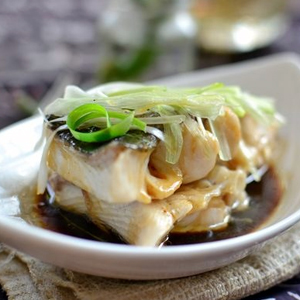3、把蒸好的鱼取出,捡去葱姜,将调好的汁浇在鱼上,撒上蒜末;