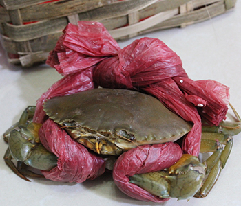 2、在蒸青蟹的时候,记住要把青蟹先绑起来,这样可以防止在蒸的时候不会出现掉腿的情况;
