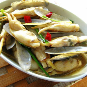 蛏子味道鲜美,形态美观,古人曾赞誉它“美人种子市蛏秧”,将蛏子比喻成美人种子是不过分的,因为它符合作为美人的所有条件:苗条、白皙、柔弱。总感觉吃多了也会变美。蛏子的做法很多,以下介绍一种简单又美味的做法。
