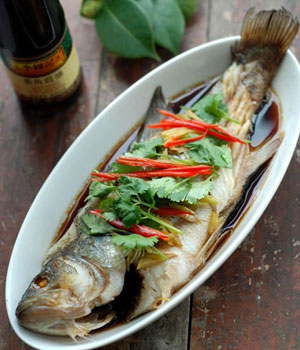 特别是清蒸鲈鱼,时间要把握好,而且蒸鱼豉油不要放太多,加入一点来调味和增色即可。