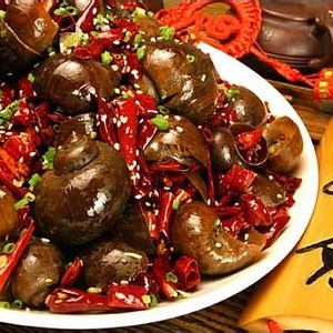 3、煮熟的田螺运到各店后即可进行烹饪,先在锅中加入豆瓣酱、花椒、辣椒、糖、醋等调料炒出香味,再放入田螺煸炒,最后用小火闷煮,使其入味,从而将其麻辣鲜香的特点发挥得淋漓尽致。
