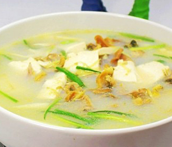 5、锅开5分钟入河蚌片,加盐调味,滚3分钟撒上小葱段即可。此菜汤色浓白似乳,味道鲜美无比,是农家看家之菜,不可不尝。