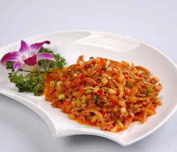 3、备火腿丝、姜丝、小葱丝(段);