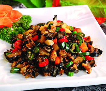 5、 加入适量水,中火烧至水分将干,亮油,加入少许味精拌匀,即可起锅。