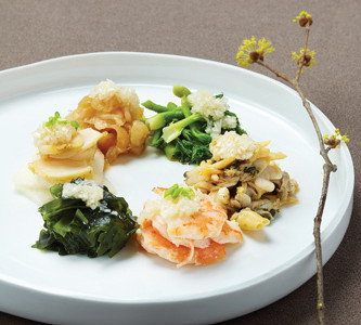 4.、所有的原料混合,淋入香油拌匀,然后添加适量盐、香醋和鸡精,拌匀即可。