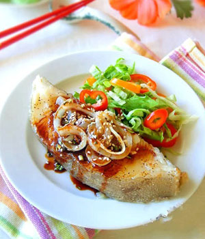鳕鱼,看起来十分的逗趣,大眼大头又大口,但是吃进嘴里却十分嫩滑!按捺不住躁动的心急忙用刀叉就鳕鱼塞进嘴巴里,感受营养和美味在口中融化。煎鳕鱼排,首先得去掉鳕鱼的皮哈,露出雪白嫩滑的肉,小心翼翼的放入平底锅里煎,就如守护一只稚嫩的小鸡,极怕它碎了。