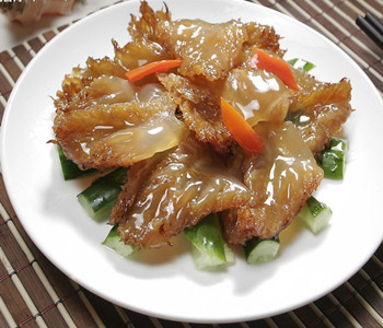海蜇头本身就十分的鲜美,加上醋、酱油等佐料一起凉拌,则是一道十分开胃的小菜!你是否已经蠢蠢欲动了呢?赶紧动手吧!