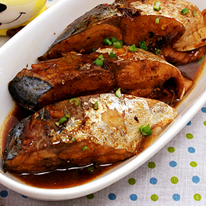 9、下入炸好的鲅鱼段,移小火曼烧至熟烂入味。