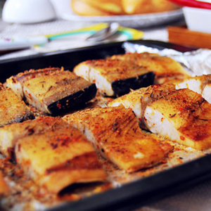 3、热油放,腌制好的鲅鱼煎制金黄色。