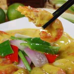*黄金炸浆要调得稀浓适中,若炸浆调得太稀就会裹不住虾仁,太厚的话虾仁则不易炸熟,应以捞起炸浆往下倒不会断为准。