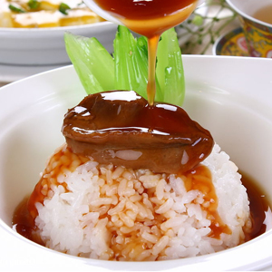 4、转中小火焖制入味,大概20分钟左右吧,摆在米饭上,浇上鲍鱼汁即可。