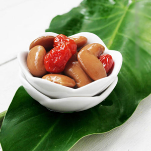 3、放入番茄干,大火煮开,转小火煮至芸豆绵软,放入冰糖煮化出锅;