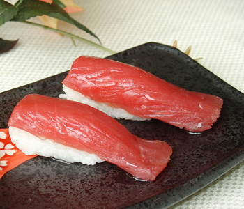 世界各地吃金枪鱼的方式都有所不同,而日本人吃金枪鱼的习惯就只有一种,那就是生吃。一般来说,金枪鱼生吃要切成0.5厘米的厚片,切片要均匀,这样才能保证嫩滑不油腻的口感。假如切得过薄就没有滑溜的感觉和嚼劲,过厚容易觉得油腻。但值得注意的是,新鲜的冰鲜金枪鱼色泽呈现出的是自然的樱桃红色,表面上还有油腻感,生吃金枪鱼最好选择新鲜未变质的鱼肉。从保护身体健康的角度出发,不要生食一氧化碳处理过的金枪鱼。一氧化碳处理过的金枪鱼色泽鲜艳,呈粉红色,表面无油感,显水性,手摸无弹性。另外,还有一种不宜食用的金枪鱼是“常温金枪鱼”。这种金枪鱼通常放在普通冷柜里保鲜,品质低,口感差,保鲜及卫生程度都不符合标准,更适宜熟食。