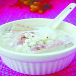 3、薏米芡实汤适宜急慢性肾炎水肿、癌性腹水、面浮肢肿之人食用。