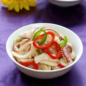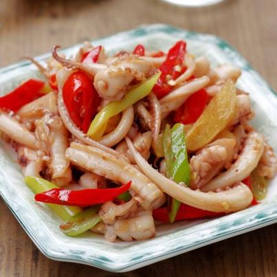 3、鱿鱼不可炒制过久,以免严重缩水,口感变老