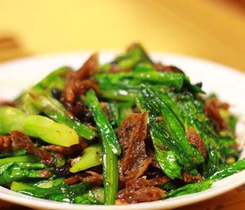 4、豆豉鲮鱼油麦菜做好吃的秘诀是勾芡,勾芡一定要薄博的,糊嘴的芡汁影响口感。