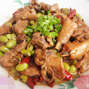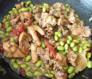 我们在做这道菜的时候,一般是将鸡肉烧到差不多的时候才放毛豆,最后是两者一同翻炒煮熟。鸡肉一般需要烧10分钟左右,而煮毛豆一般需要7-8分钟哦,具体看火候而定。大家也可以提前浸泡一下毛豆,泡得稍微有点软了,再大火翻炒十分入味哦。总的来说,要做毛豆烧鸡,一般需要20分钟左右的时间,切记一定要将毛豆煮熟或炒熟后再吃,否则,其中所含的不利健康的抗胰蛋白酶和凝血酶会引起中毒的,分分钟会出事呢,要切记!