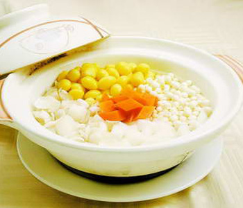 百合芡实煲是一道很适合秋季滋补用的菜肴。百合一年四季都可食用,不过秋季食用才能达到最佳的滋补效果,而芡实自古有“补而不峻,防而不燥”的功效,非常适合干燥的秋季食用。百合芡实煲选用新鲜百合和芡实两者加香芋、虾仁等共同熬制而成。百合芡实汤中的芡实自古就是人们“永葆青春,防止未老先衰”的妙药。芡实味平,性干涩,在中医中主脾、肾两脉,富含钙、磷、钾、镁、锌、蛋白质等营养物质,具有补脾固肾,助气涩精。有治疗梦遗滑精,解暑热酒毒,疗带浊泄泻,小便不禁等功效;对哮喘、小儿遗尿、消化不良、神经衰弱、倦怠疲乏、老人小便频繁等均有疗效。