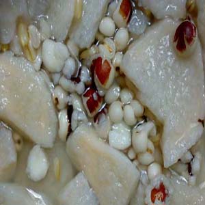 山药薏米芡实粥的山药、薏米和芡实是能直接供给我们气血的良药美食。它的功效有以下几点: