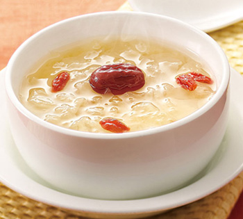 将银耳泡发洗净,与冰糖、大枣、枸杞一同放入锅中,并放入清水,文火慢炖至糊状,放入容器中,每日食用,有利于养生。长期服用可润肤美容。