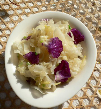 做法:1、银耳泡发,去除根蒂并撕成小朵,冲洗干净后放入沸水中焯一下,后捞出沥干。