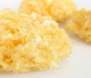 其次,要闻气味。品质新鲜的银耳,应无酸、臭、异味等。银耳若有霉味,说明已经受潮,发霉变质。轻度霉的银耳应经晾晒并除去发霉部分,仍可食用;严重发霉变质的,不宜再供食用。银耳具有焦味,大多数系因鲜银耳在加工脱水时烘干过火所致,虽可食用,但品质、风味均较差。