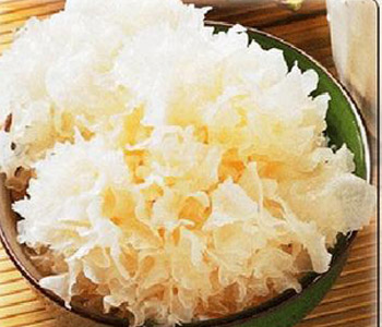 一级的新鲜银耳耳片色泽鲜白仅带微黄,有光泽,朵大体轻疏松,肉质肥厚,坚韧而有弹性,蒂头无耳脚、黑点,无杂质等。浸水后,膨胀率可达15倍以上。