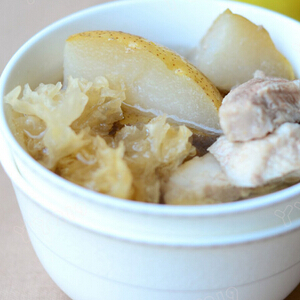 银耳雪梨炖瘦肉是秋冬季节的滋补食品,主要有养阴润肺,生津润肠,降火清心等功效,对治疗咳嗽、干燥流鼻血都有明显功效。