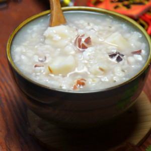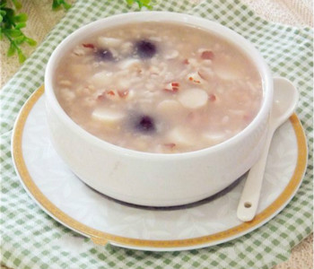 原料:糯米80克、薏仁50克、芡实50克、山药100克、冰糖25克。