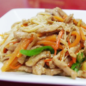 食材:金针菇、胡萝卜、木耳、蒜苗、橄榄油、葱姜、盐、糖、鱼露、香油、鸡精、香醋。