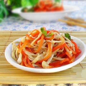 很多人都吃过金针菇,而胡萝卜对于人体的健康也是有非常重大的好处的。那么这两者搭配的金针菇炒胡萝卜丝是一道怎样的菜呢?下面为您介绍金针菇炒胡萝卜丝的做法~