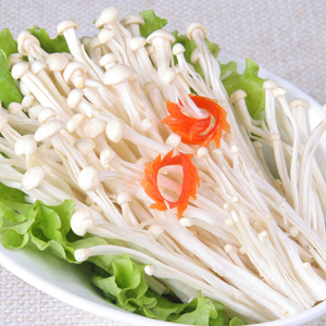 金针菇具有热量低、高蛋白、低脂肪、多糖、多种维生素的营养特点。