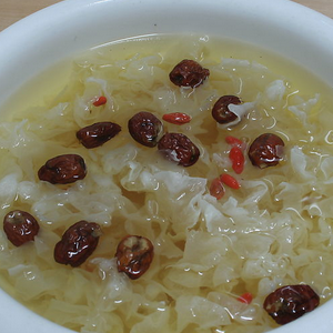 银耳(干)20克,枣(干)100克,枸杞子100克,冰糖50克。