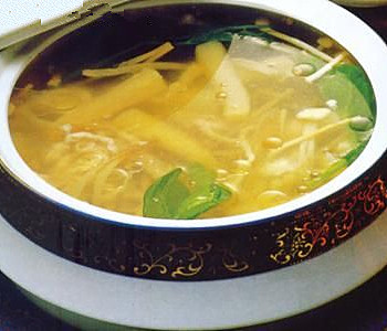 PS:金针菇鸡丝汤味道清淡,有促进新陈代谢的功能,对清理肠胃有很好的作用,孕妇吃了能预防便秘。