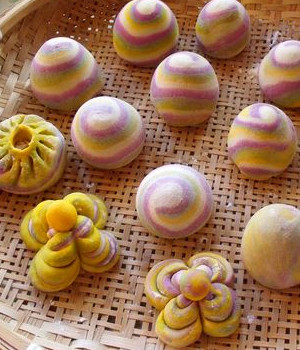 14、同样翻转做成花色馒头,中心形成自然爱心形状,也可以向一个方向翻转。