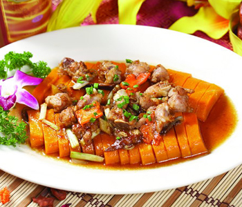 排骨蒸南瓜是一道营养菜肴,适合夏季食用,由用酱料腌制出来的排骨搭配甘甜的南瓜一同蒸制而成,口感丰富,营养全面。排骨蒸南瓜的做法简单,口感却很很不一般,排骨和南瓜看似不搭,其实两者结合别有一番风味。排骨可以帮助人体补充钙质,南瓜则能有效益气养颜,这一道菜的食疗功效同样也很强大,吃货们一起来学做吧!