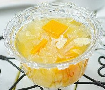 做法:1、把银耳用水泡发,等银耳变软后清洗干净,并把根蒂去除,将银耳撕成小朵儿。2、将新鲜百合剥开,清洗干净。3、莲子浸泡几分钟,然后去除表面杂质。4、把南瓜去皮,并切成片。5、把银耳、莲子放入电饭锅中,加入适量的水,熬煮30分钟。6、然后把南瓜放入其中,再煮15分钟。7、把煮好的南瓜百合银耳羹盛出,等到稍微凉却之后,加入蜂蜜即可食用。