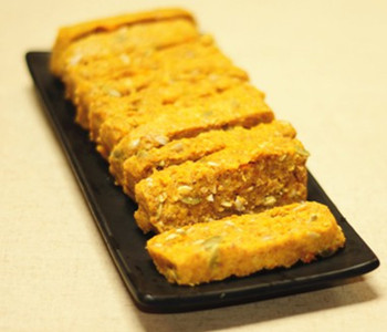 材料:南瓜泥0.25杯,牛奶0.3杯,鸡蛋1个,黄油0.5大匙,糖1小匙,泡打粉0.5小匙,辣椒粉适量,月桂粉适量,盐0.13小匙,全麦面粉0.5杯。