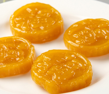 2、南瓜饼中丰富的类胡萝卜素在机体内可转化成具有重要生理功能的维生素A,从而对上皮组织的生长分化、维持正常视觉、促进骨骼的发育具有重要生理功能。