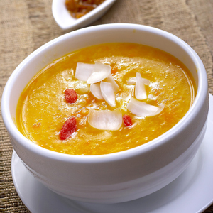 南瓜粥色泽金黄,卖相极好,除此之外,它还有很丰富的“内在美”。南瓜粥的营养价值非常高,南瓜含瓜氨酸、精氨酸、麦门冬素及维生素A、B、C、果胶、纤维素等对人体有益的营养元素。每100克含蛋白质0.6克,脂肪1克。碳水化合物5.7克,粗纤维1.1克,灰 分6克,钙10毫克,磷32毫克,铁0.5毫克,萝卜素0.57毫克,核黄素0.04毫克,尼克酸0.7毫克,抗坏酸5毫克。南瓜熬粥食用不仅能很好地保证这些营养成分不流失,还有助于人体吸收。