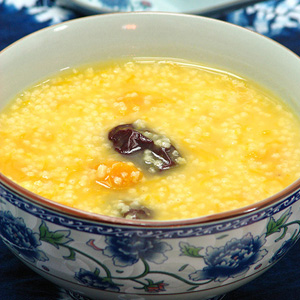 小米同样也有很好的食疗功效,它不仅仅能补脾胃、补肾,还有很好的安心养神、滋阴养颜的作用。中医认为小米能“和胃温中”,因此小米对拉肚子、呕吐、消化不良及糖尿者很有益处。小米对脾胃寒虚、中气不足和失眠诸病症有治疗作用。红枣味甘性温,是一种非常好的美容食品,有消炎止痛,解毒杀虫,降糖止渴的功效。无病者食之,可起到养血强壮的保健作用。经常吃红枣可以驻颜祛斑、清肝明目、润肺健脾、使面色红润,尤益于女性,对防治心血管疾病有良好作用。红枣南瓜小米粥作为美容养胃的食疗保健品来食用,比起市面上的一些保健品更加天然健康。