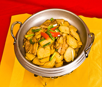 2、土豆片直接生炒比用水焯过的口感要好;