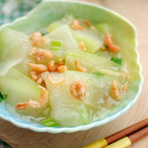 海米冬瓜汤是浙江省传统的汉族名菜,属于浙菜系。冬瓜含有充足的水分,具有清热毒、利排尿、止渴除烦、祛湿解暑等功效,是孕妇水肿的消肿佳品;海米是钙的较好来源。在孕晚期,准妈妈可多吃冬瓜和海米,既可去除孕期水肿,又可补充钙质。那么如此营养丰富又可口的海米冬瓜汤怎么做呢?