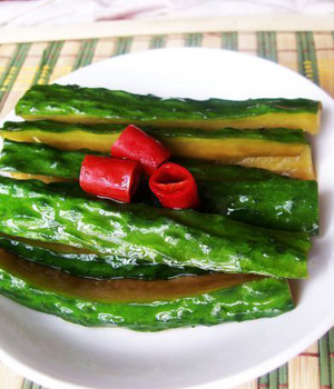 5、减肥强体:黄瓜中所含的丙醇二酸,可抑制糖类物质转变为脂肪。此外,黄瓜中的纤维素对促进人体肠道内腐败物质的排除和降低胆固醇有一定作用,能强身健体。