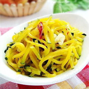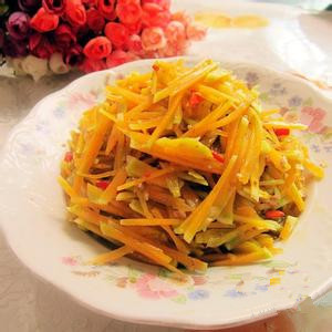 在日常生活中南瓜是一种常见的蔬菜,成熟期在夏秋两季,果实的颜色有橘红、金黄、绿色等,果实的形状多为圆形。南瓜香甜可口,不仅具有很高的营养价值而且在医学方面也有很重要的疗效。南瓜的做法有很多种,不管是蒸的、煮的还是炒的,吃起来总是感觉那么香甜,下面我们一起来看看炒南瓜丝的做法吧。