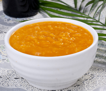 南瓜粥不仅色泽金黄,口感香甜令人回味,而且它还含有丰富的营养成分。南瓜粥的营养价值非常高,南瓜含瓜氨酸、精氨酸、麦门冬素及维生素A、B、C、果胶、纤维素等对人体有益的营养元素。每100克含蛋白质0.6克,脂肪1克。碳水化合物5.7克,粗纤维1.1克,灰分6克,钙10毫克,磷32毫克,铁0.5毫克,胡萝卜素0.57毫克,核黄素0.04毫克,尼克酸0.7毫克,抗坏血酸5毫克。南瓜熬粥食用不仅能很好地保证这些营养成分不流失,还有助于人体吸收。