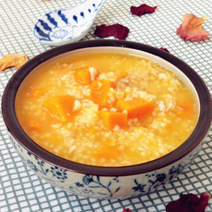 材料:南瓜60g,糙米20g,小米20g,大米20g,玉米渣20g
