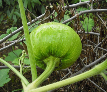 材料:嫩南瓜250克,猪肉适量,花椒、香芹梗适量,蒜蓉适量,酱油少许,盐少许