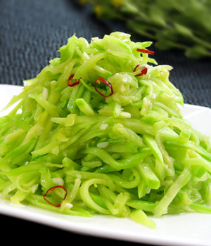 嫩南瓜炒肉丝,咸鲜味型的菜肴,味新鲜、肉鲜嫩,是四川人家中常见的时令菜之一。嫩南瓜炒肉的适宜人群也比较广,因为这道菜基本上是老少皆宜,此外,它也尤其适合脾胃虚弱、需要补中益气者食用。食用嫩南瓜炒肉能有效调理肠胃,在食疗法上可用于肠胃有热所致的食欲不佳等症状。
